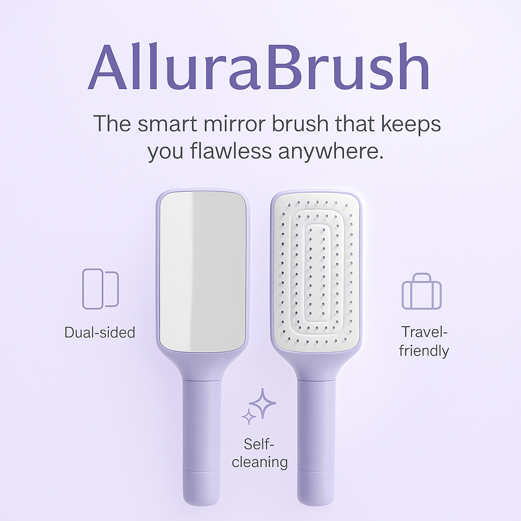 AlluraBrush is more than just a hairbrush — it’s a statement of elegance and innovation. Designed with a dual-sided mirror and self-cleaning bristles, it brings effortless beauty to your daily routine. Whether you’re at home or on the go, AlluraBrush keeps your style flawless and your confidence shining.